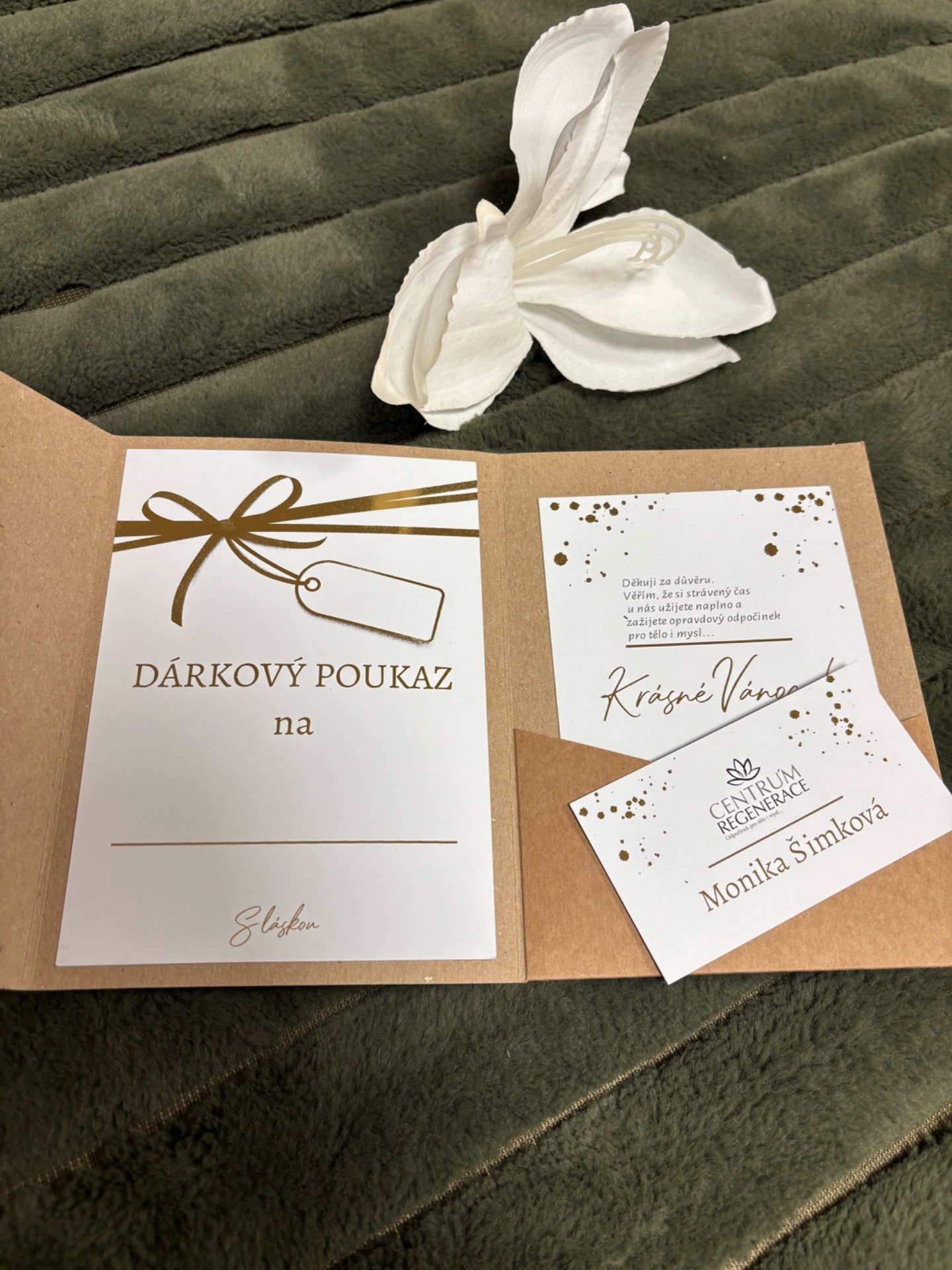 Dárkový poukaz Vám vystavím na recepci Centra regenerace, eventuálně můžu zaslat poukaz poštou.